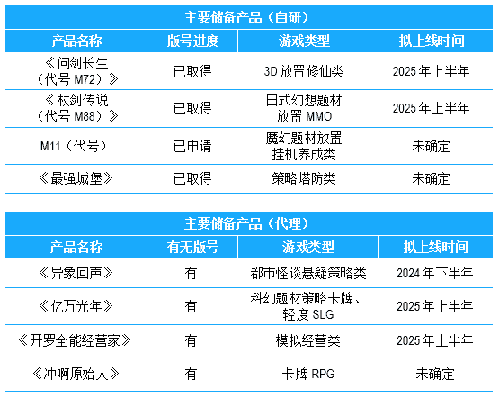 公司储备多款新品,,期待为玩家解锁更多新鲜体验,,部分产品如下表所示::