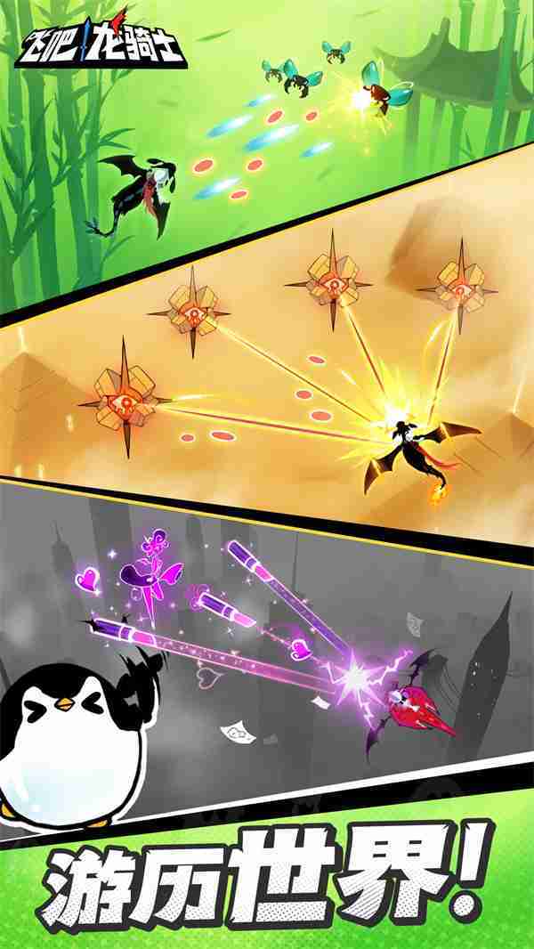《飞吧龙骑士》是一款集合了飞行弹幕射击、、、、Roguelike要素和挂机养成的休闲手游,,,,极具创意的吞食子弹反击玩法,,突破传统飞行射击的刻板限制,,,带来了独特的爽快清屏体验。。。